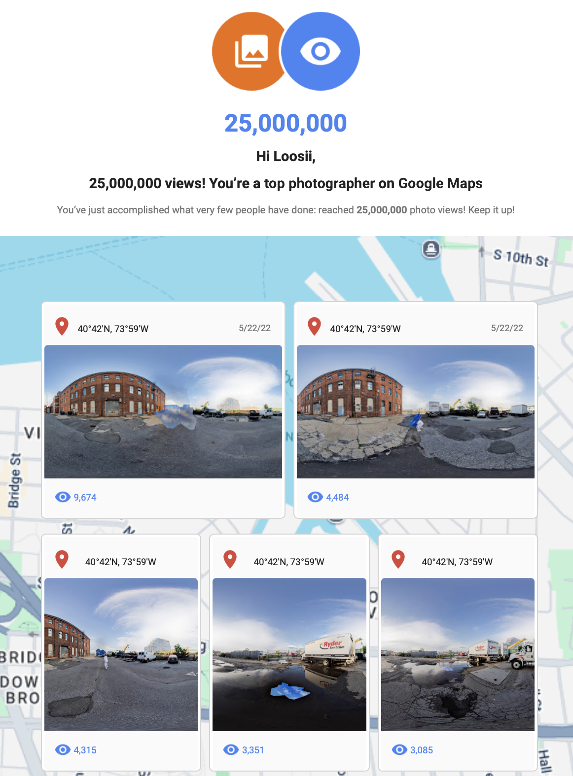 In order to create a “blue line” trajectory on Google Maps one must publish 25 consecutive panoramic images similar to a film frame rate.