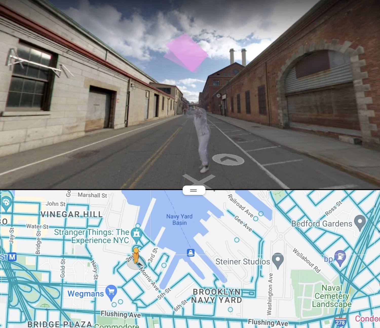 A private-public space and set-like design, the Navy Yard offered a unique opportunity to explore cartography and cinema through the stop-motion nature of Street View.