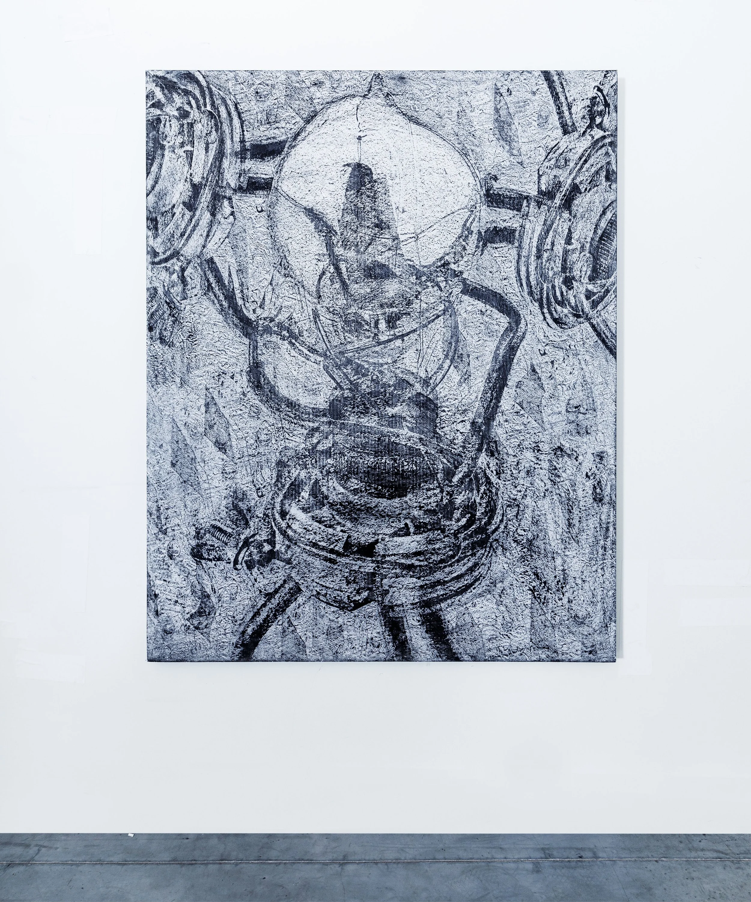 The exhibition’s title, You’re Bringing Me Down, at once refers to the psychological damage inflicted by endless doomscrolling, the directional UX of the scrolling experience that forces our fingers into repetitious swipes downward, and large-scale mining’s actual digging and devastating ecological consequences.
